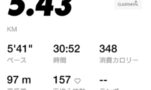 距離:5.43km時間:30:52平均ペース:5'41/km